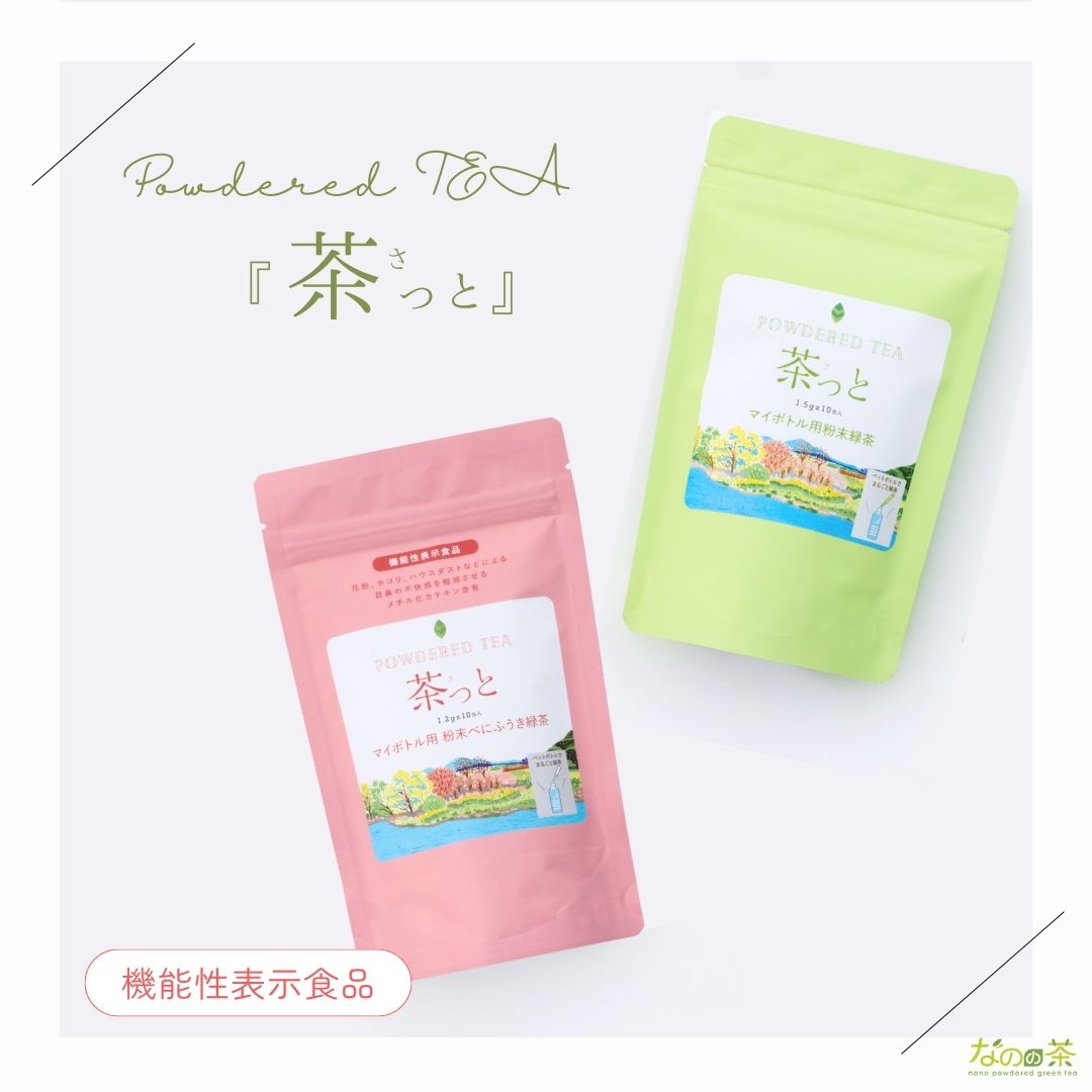 - 「なのの茶」は、一般的な粉末茶の1/100にまで超微粒子化した静岡県産粉末緑茶です。超微粒子にすることで、口当たりまろやかで、お茶の持つ栄養成分をまるごと体に取り込むことができます。